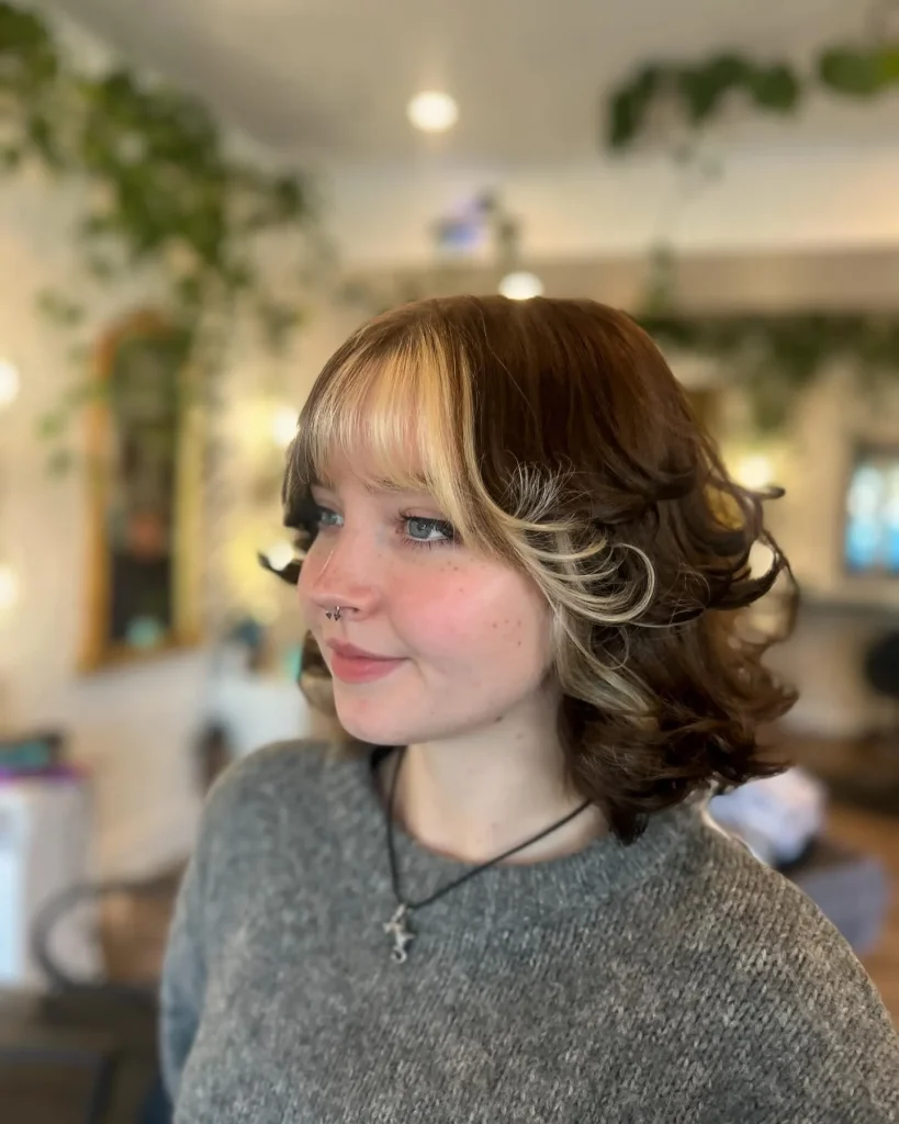 Soft curls paired with highlights create a soft, natural look. The curls add volume and movement, while the highlights brighten your face, creating a youthful and vibrant appearance.