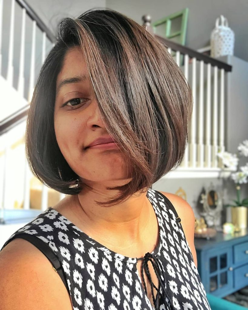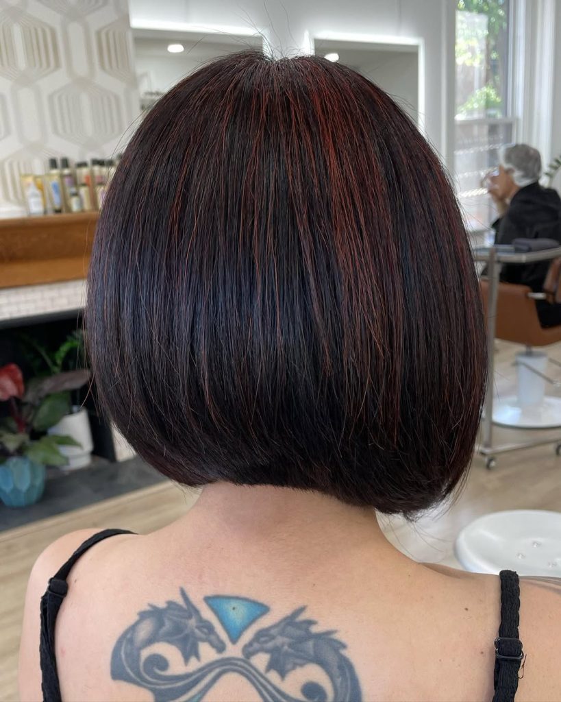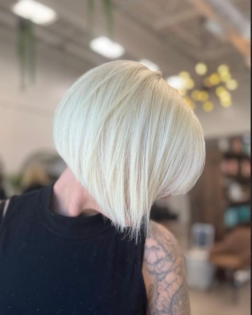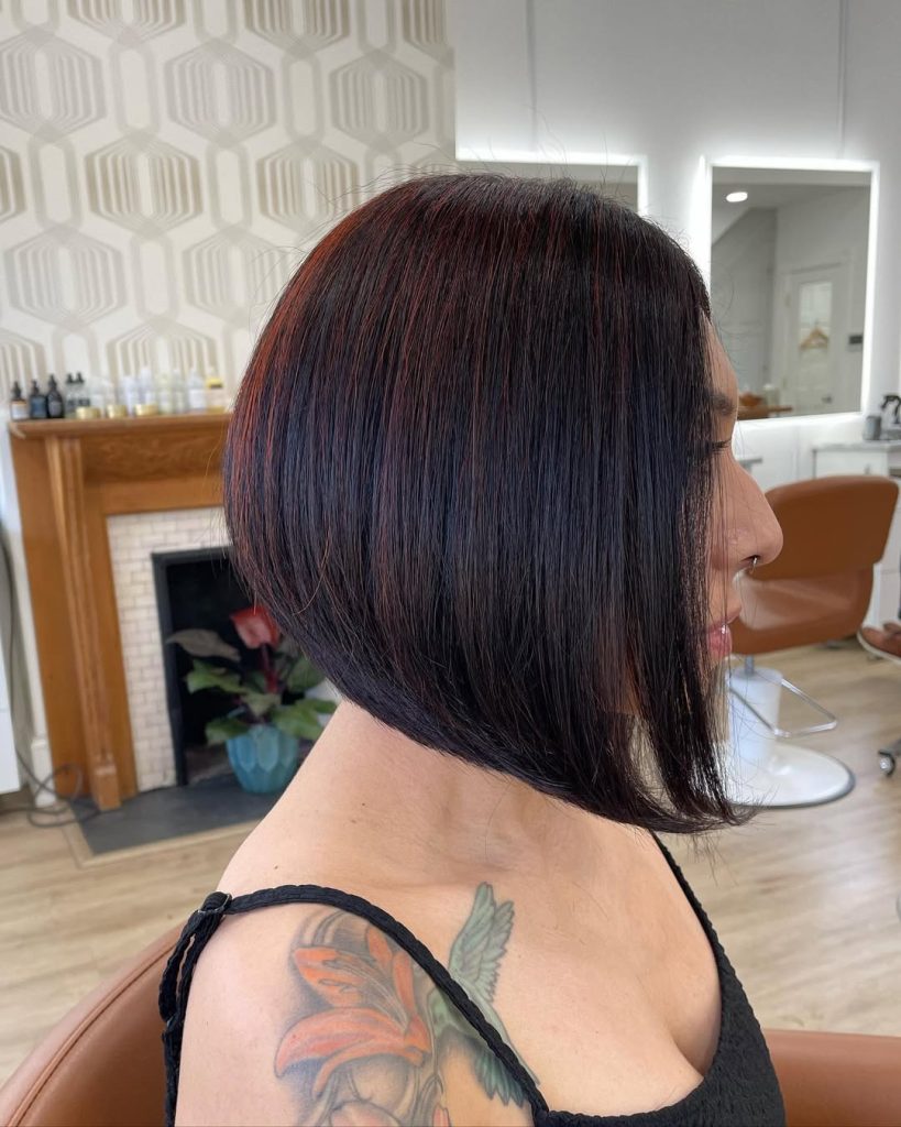 An A-line bob, shorter in the back and longer in the front, adds a modern twist to a classic style.