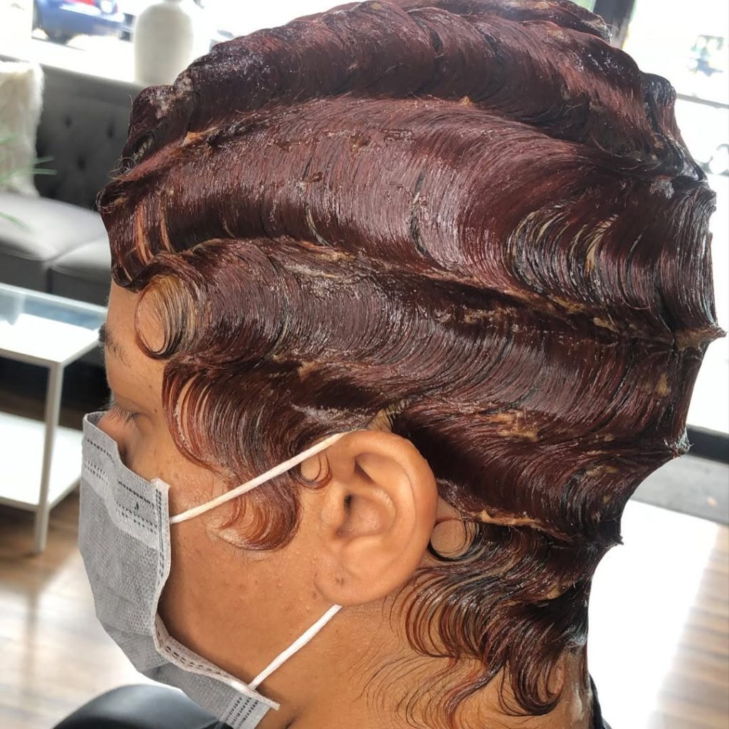 Bring a touch of vintage glamour with short hair styled into finger waves. Ideal for special occasions.