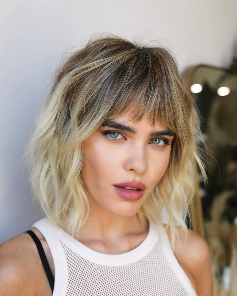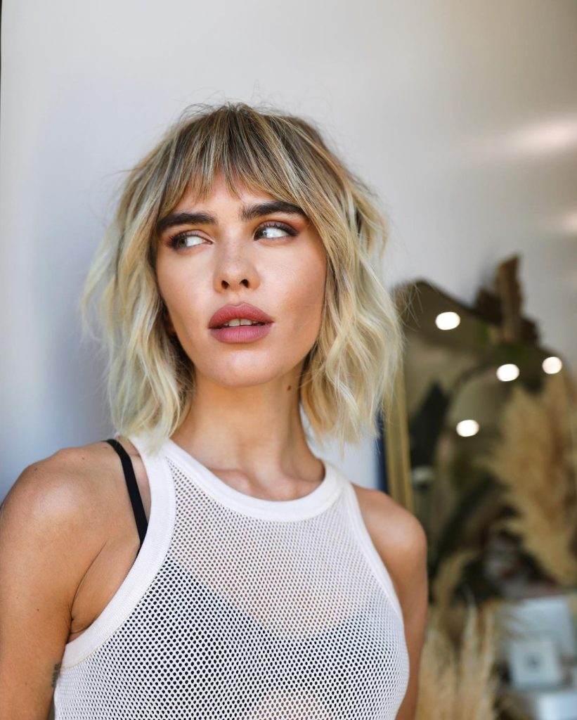 Add bangs to a classic short bob for a playful, youthful look. It’s versatile and suits all face shapes.