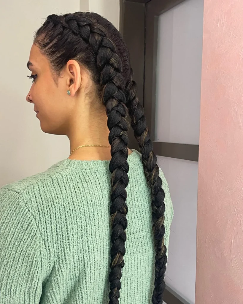 Double Dutch braids are a fun, sporty style that holds up well under a hoodie. These braids stay tight and secure, keeping your hair in place all day.