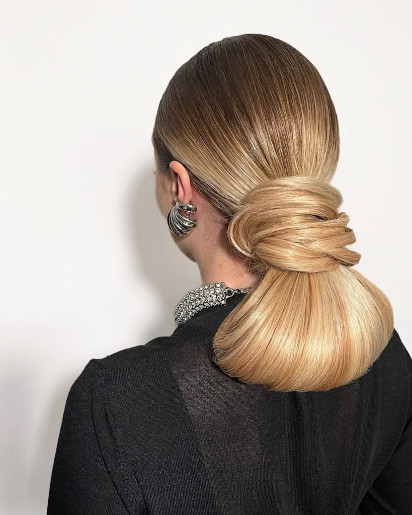 20. Sleek Low Ponytail with Hair Wrap
