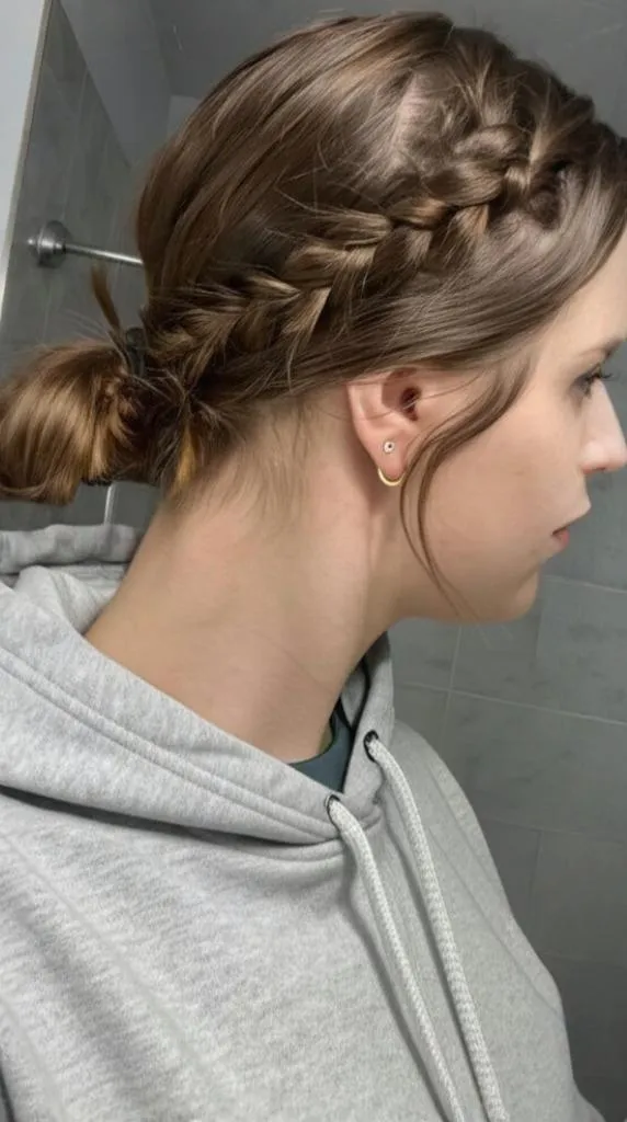 4. Braided Low Bun with Hoodie