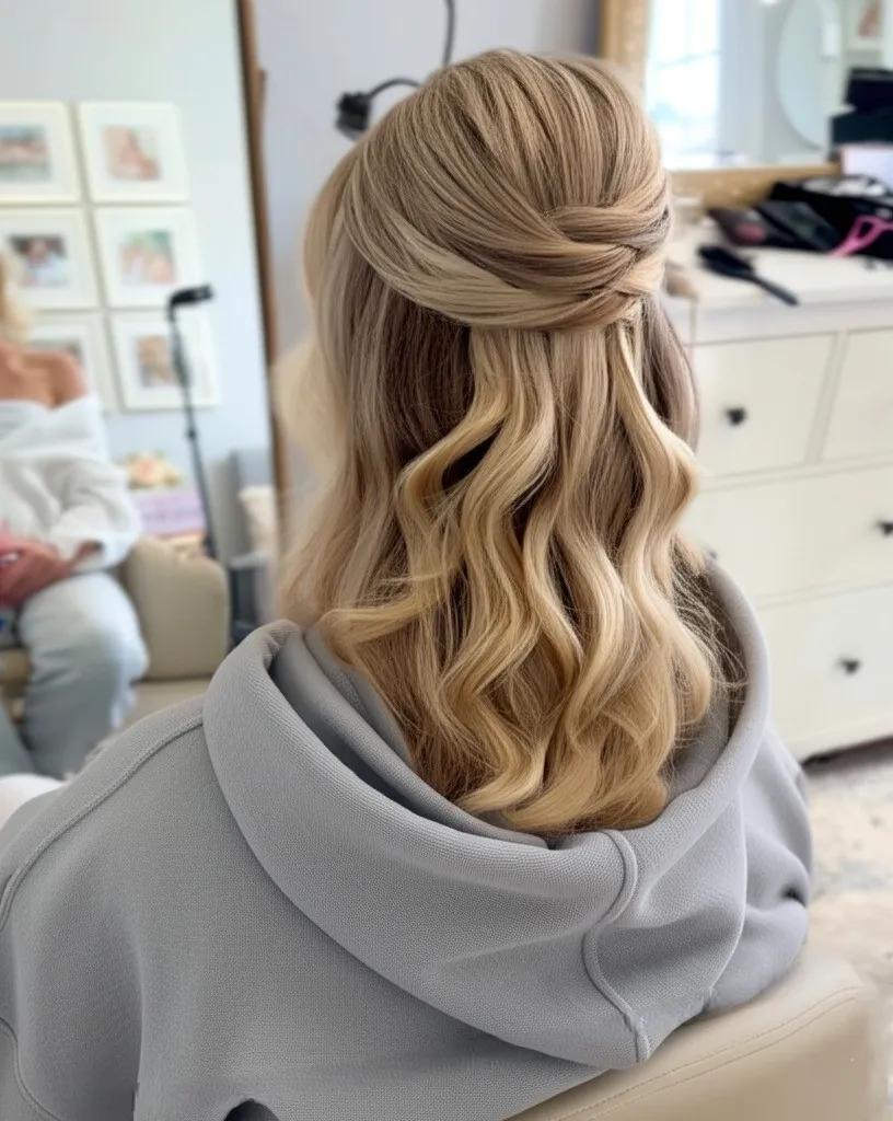 For a balance of style and comfort, a half-up, half-down hairstyle is ideal. Pull the top half of your hair into a small bun or ponytail and leave the rest loose under your hoodie.