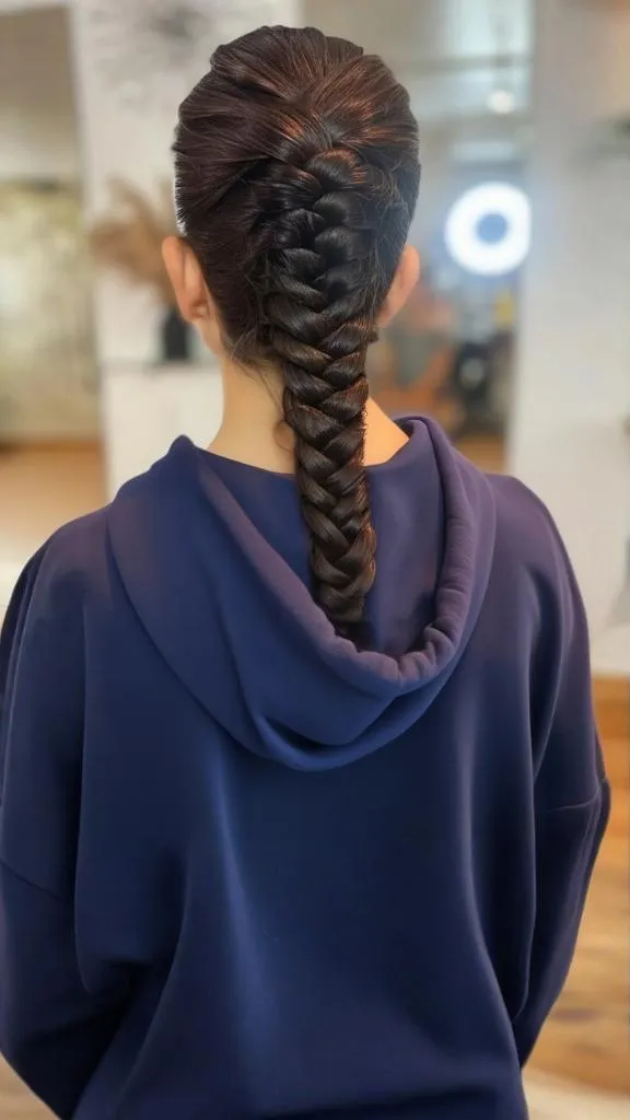 A loose fishtail braid gives your hairstyle a more bohemian feel while still looking chic under your hoodie. Itβs a laid-back but stylish option for any occasion.