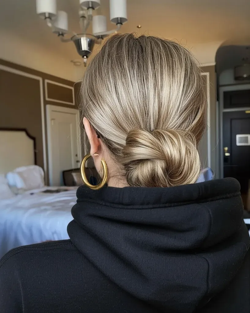 13. Sleek Low Bun with Hoodie