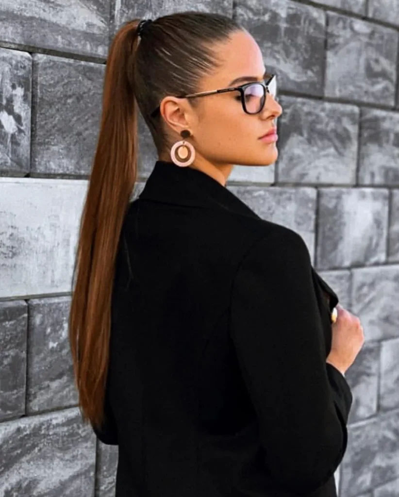 For a sleek, polished look, gather your hair into a smooth low ponytail, tuck it under your hoodie, and let it rest at your neck. Itβs simple yet chic.