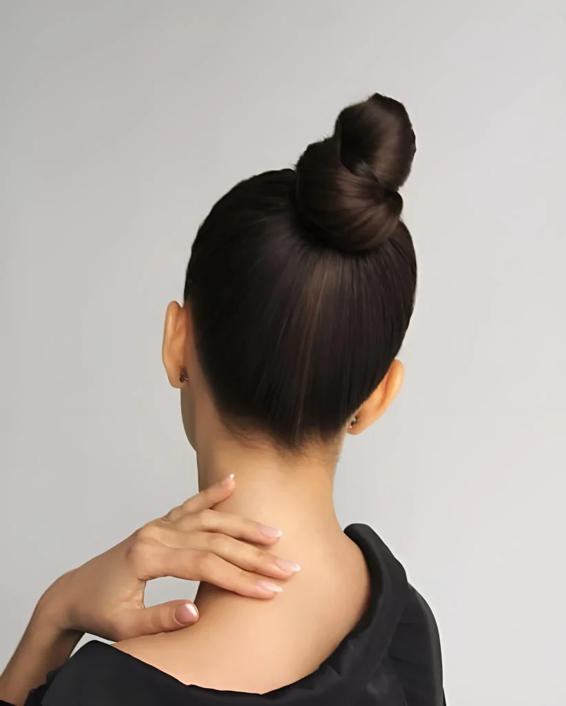 A messy top knot is perfect when you want to pull your hair out of your face but still keep it cute. Itβs effortless, practical, and stylish.