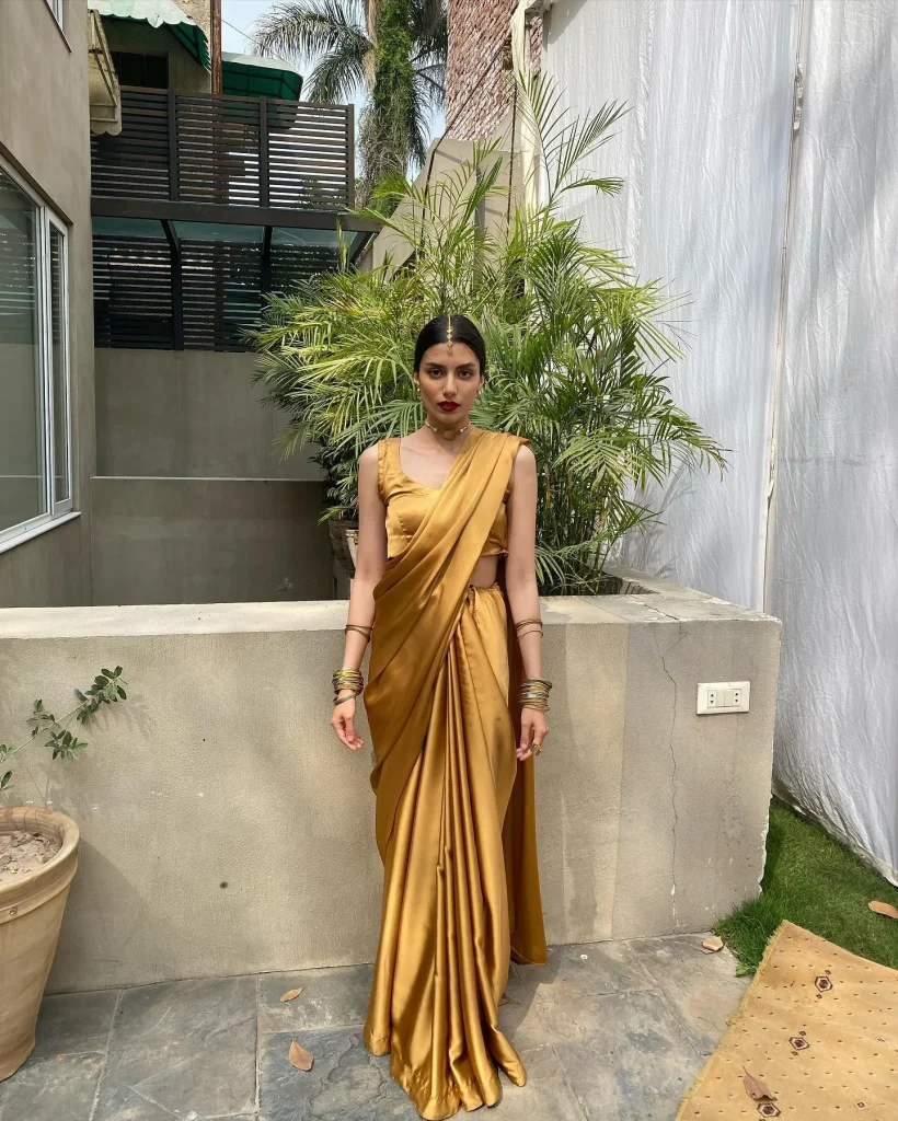 - The Form: A saree in a fluid, lightweight fabric like georgette, chiffon, or a cotton-silk blend. The structure comes from the drape, not from heavy embellishment.