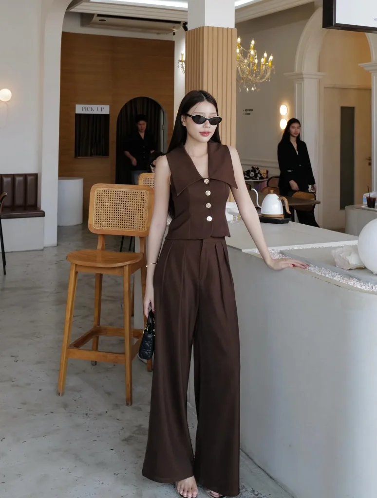 This pairing is a versatile formula. It balances the structure of a tailored top with the fluidity of a wide-leg trouser.