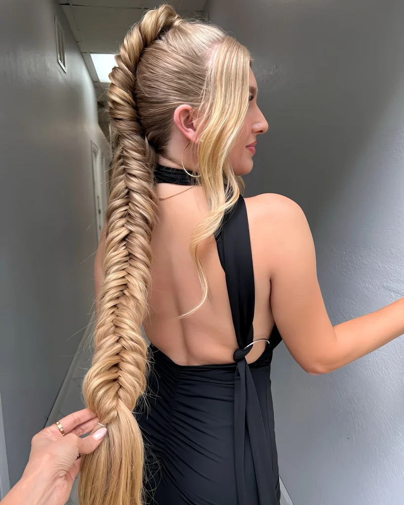 The fishtail braid is the ultimate elevated braid look. It’s sleek, intricate, and guaranteed to impress. This style will keep your hair in place, no matter how intense the game gets.