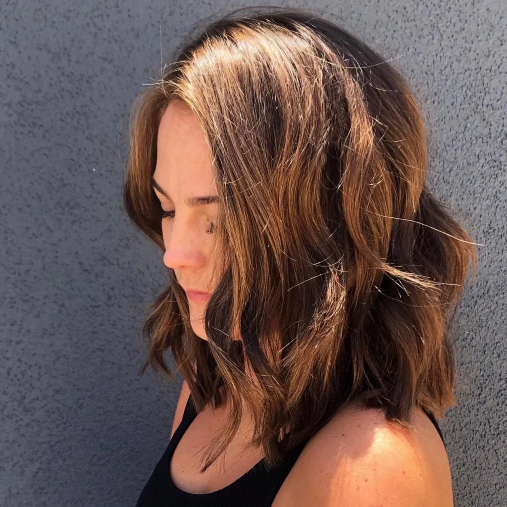 A choppy, layered lob (long bob) is a modern take on the Latina baddie hairstyle. With the right cut, this look adds texture and dimension, giving you a playful yet chic vibe.