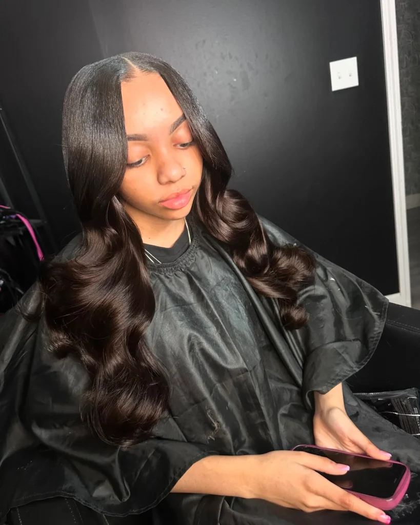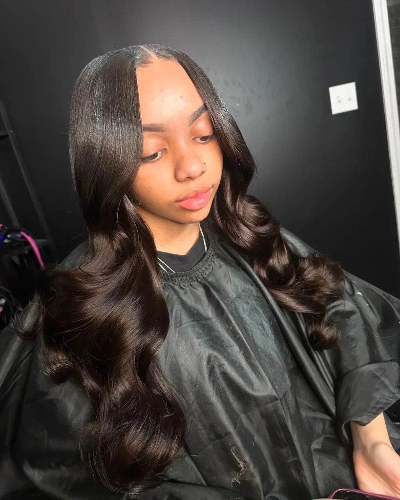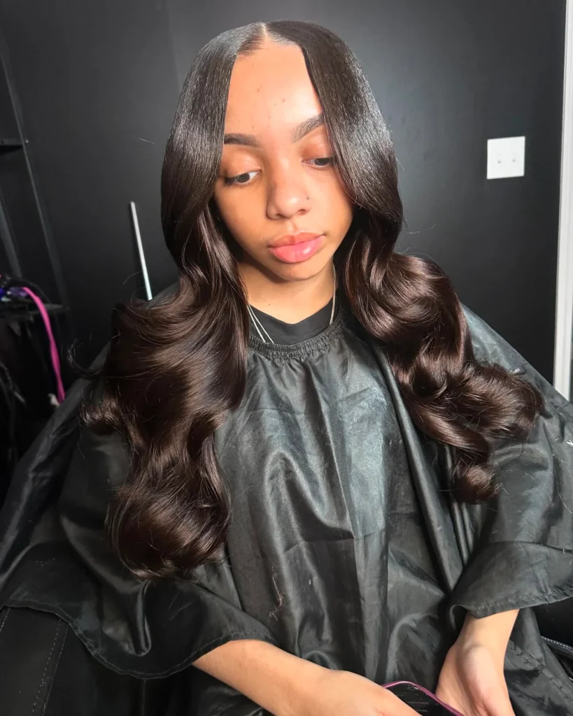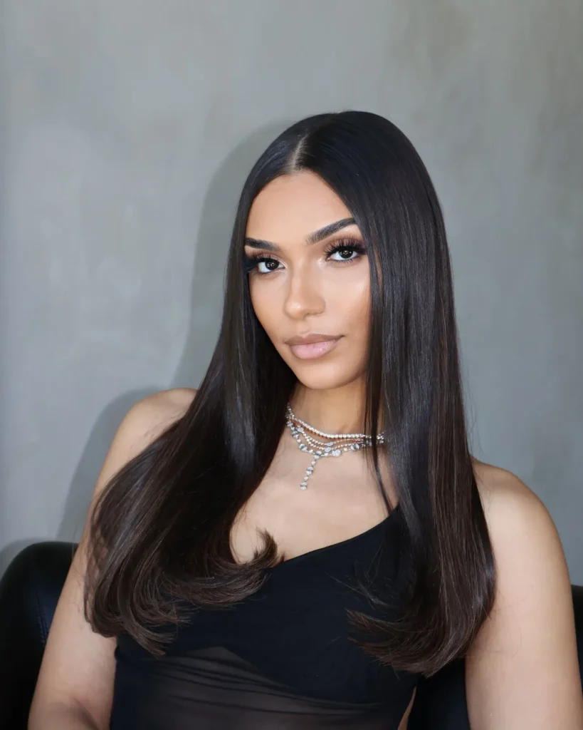 A sleek middle part with straight hair is all about clean lines and effortless beauty. This classic style is timeless and versatile, ideal for the Latina baddie who loves simplicity and elegance.