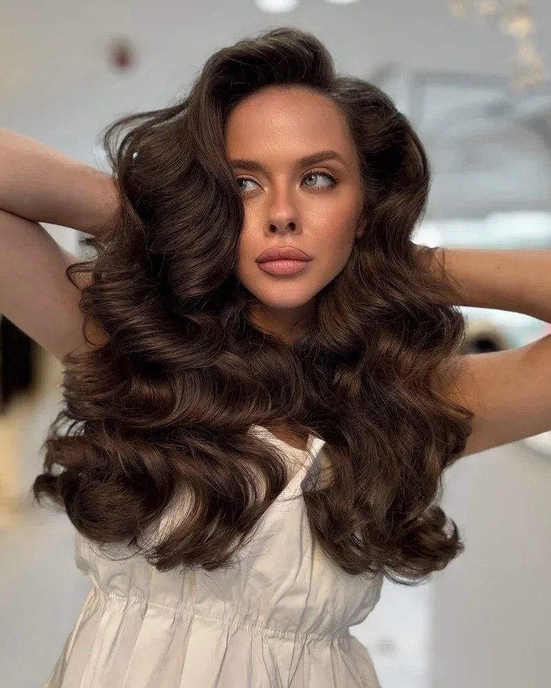 25. Voluminous Side-Swept Curls