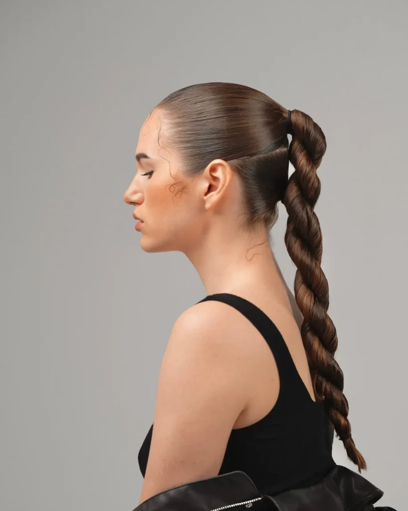 A sleek low ponytail with a twist adds sophistication to an otherwise simple style. The twist brings a little extra attention to the ponytail, making it the perfect look for any Latina baddie.