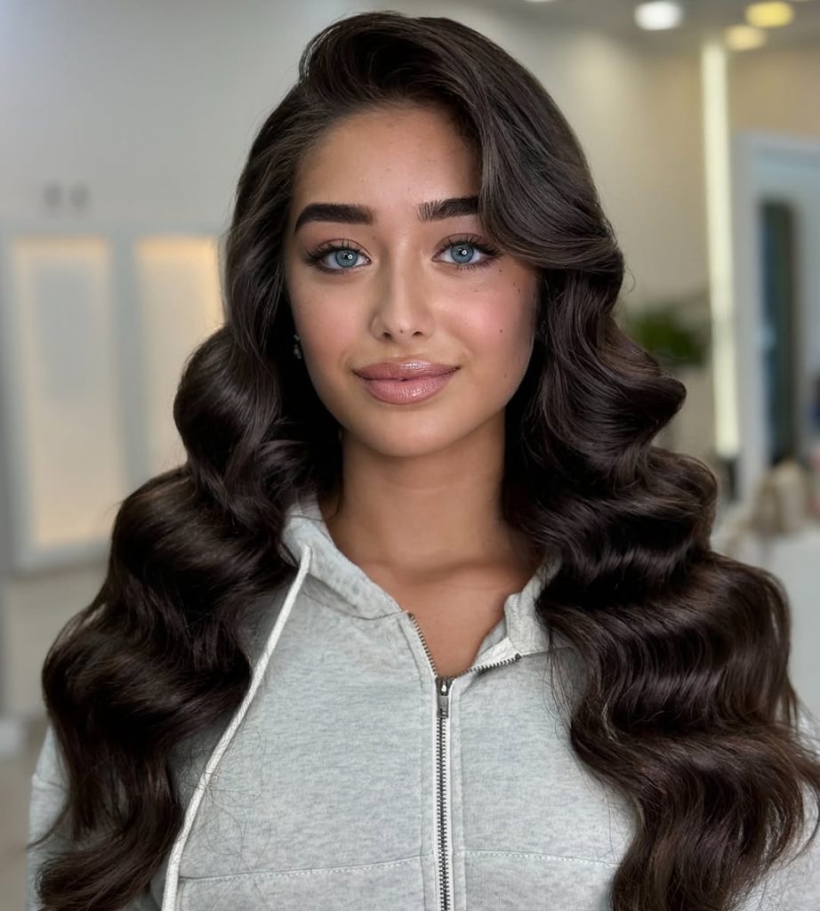 Channel old Hollywood glam with retro waves. This style requires a curling iron or rollers to create structured waves, giving your long hair a vintage, elegant feel.