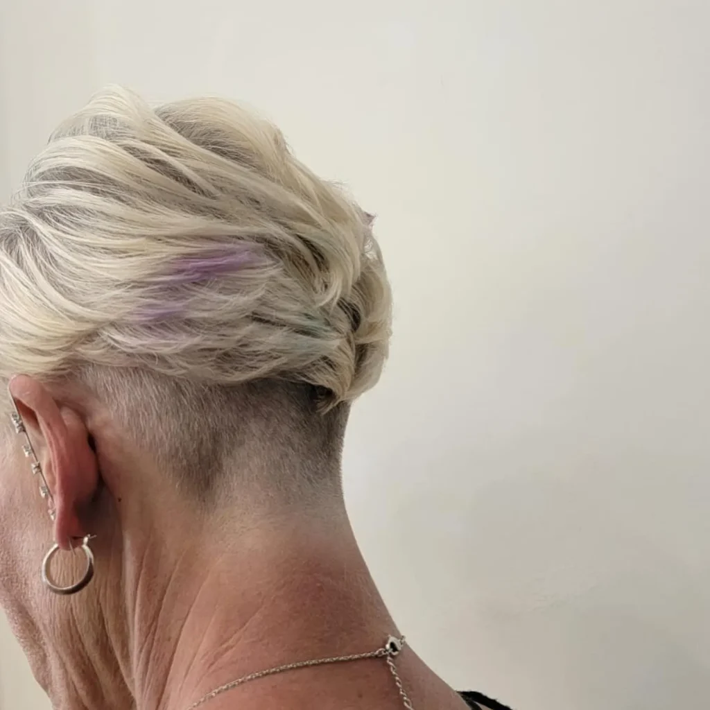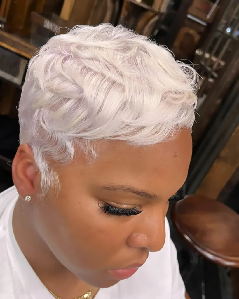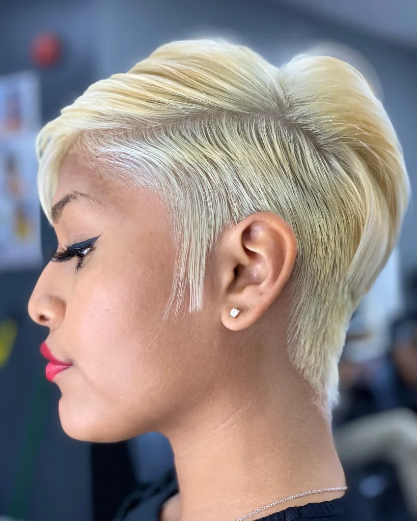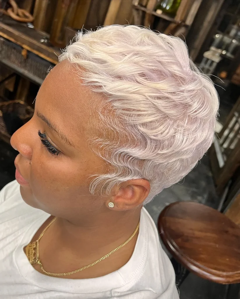 Go bold with a platinum blonde crop. This color choice is striking and gives your low cut a fresh, modern feel.