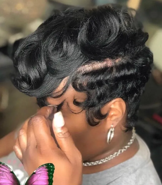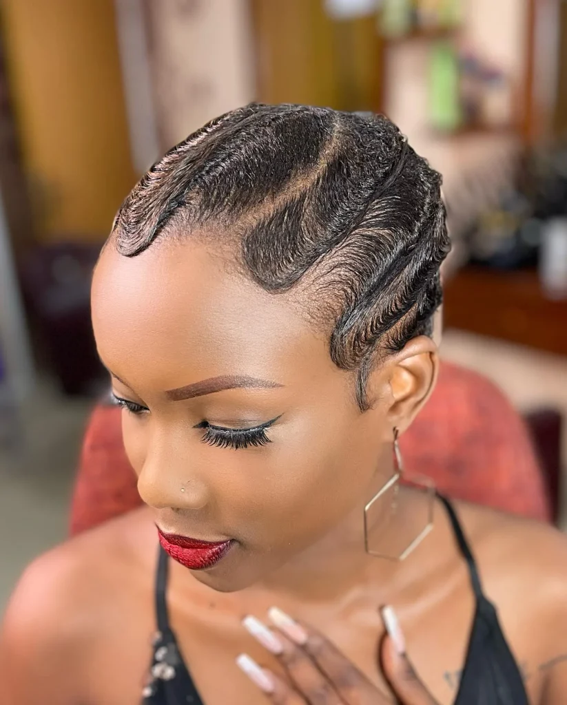 For a vintage-inspired look, try finger waves on a low cut. This style is elegant and adds a touch of old Hollywood glamour.