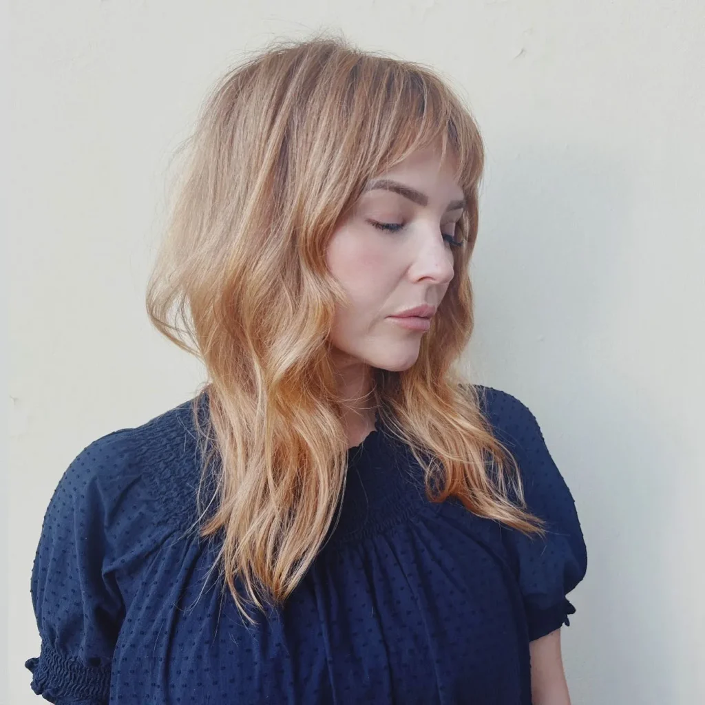 Soft, wispy, and piece-y bangs that blend seamlessly into the rest of the hair. They are less structured than blunt bangs, often slightly parted, exuding an effortless, cool-girl vibe.