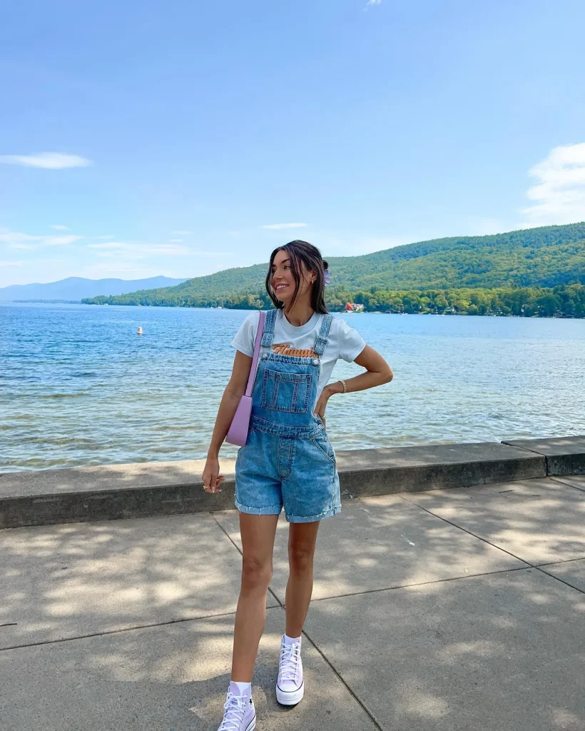 This one is playful and perfect if you’re hanging with younger fam. The overalls make you approachable, the tee keeps it cute.