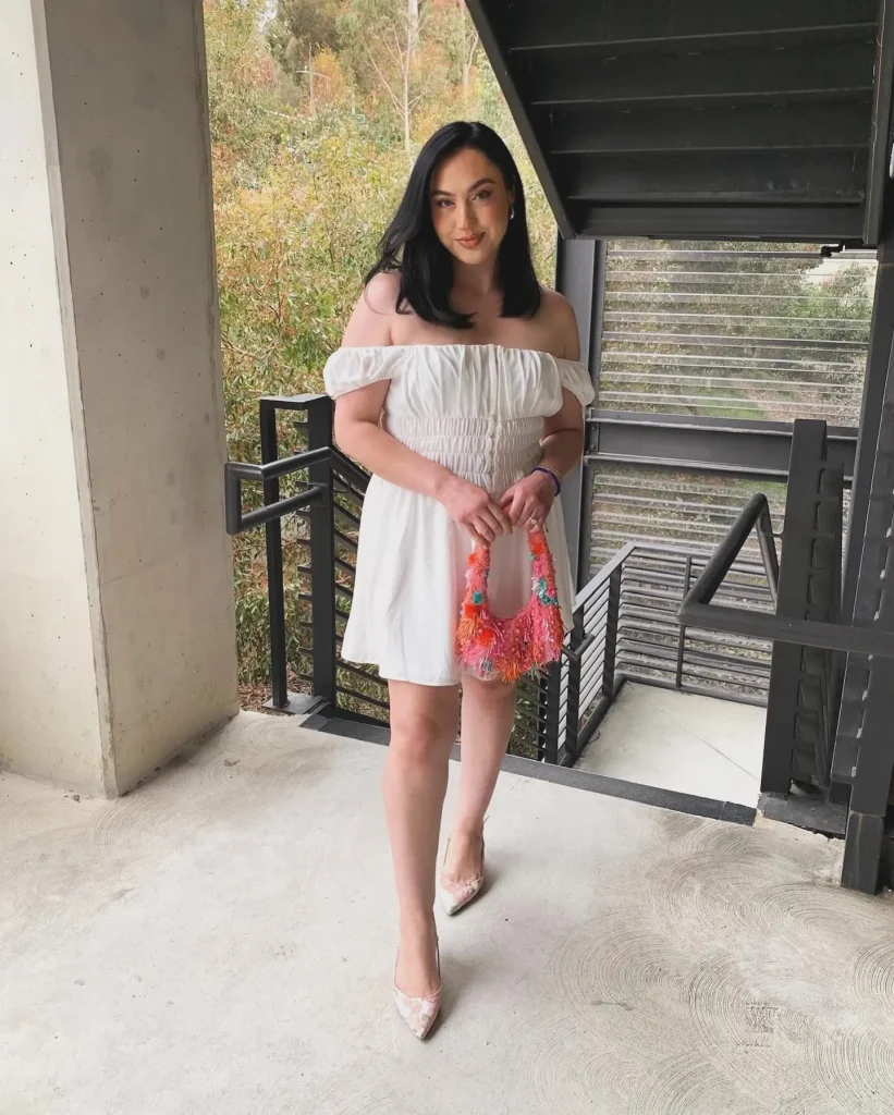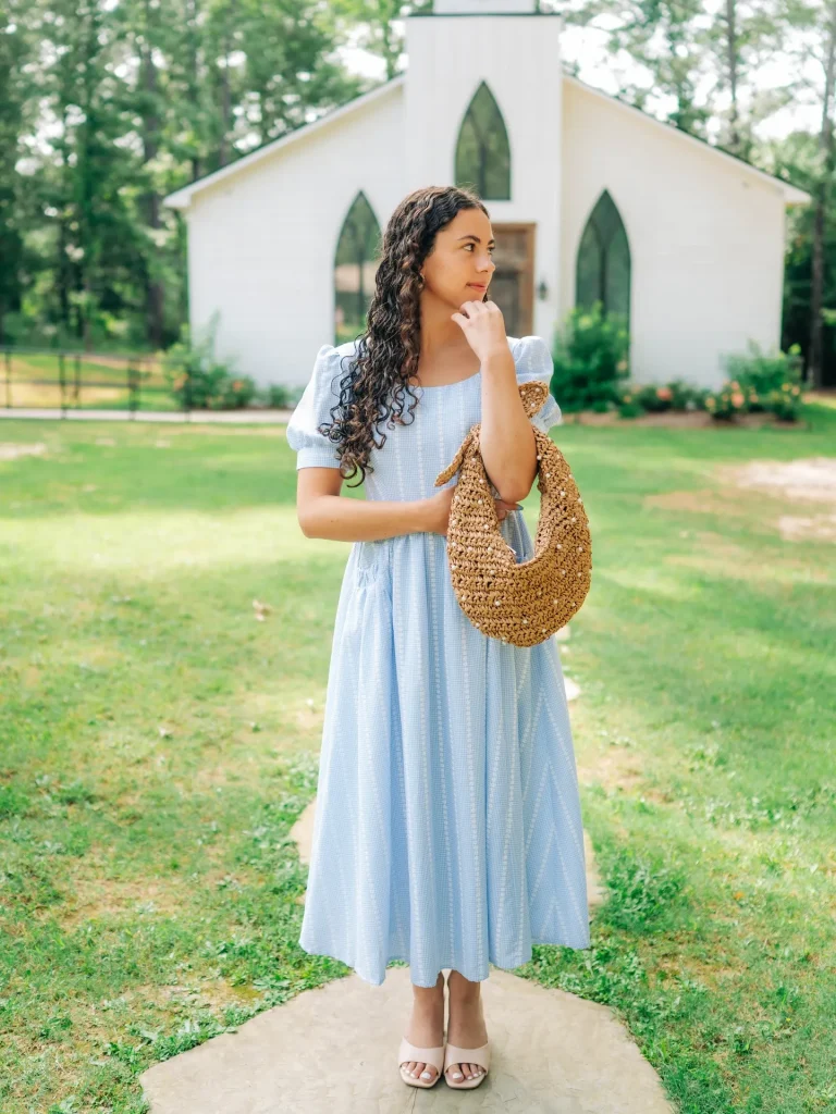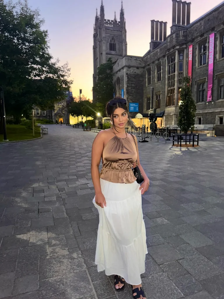 This outfit feels like a coming-of-age film. You’re soft, you’re glowing, and the dress flows like your best memories.