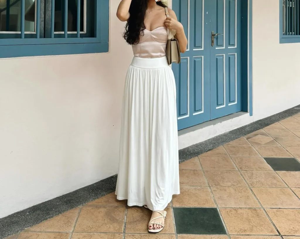 For those long outdoor hangs or park days, this one is easy to throw on and hard to forget. Choose a flowy skirt with a slight slit for drama.