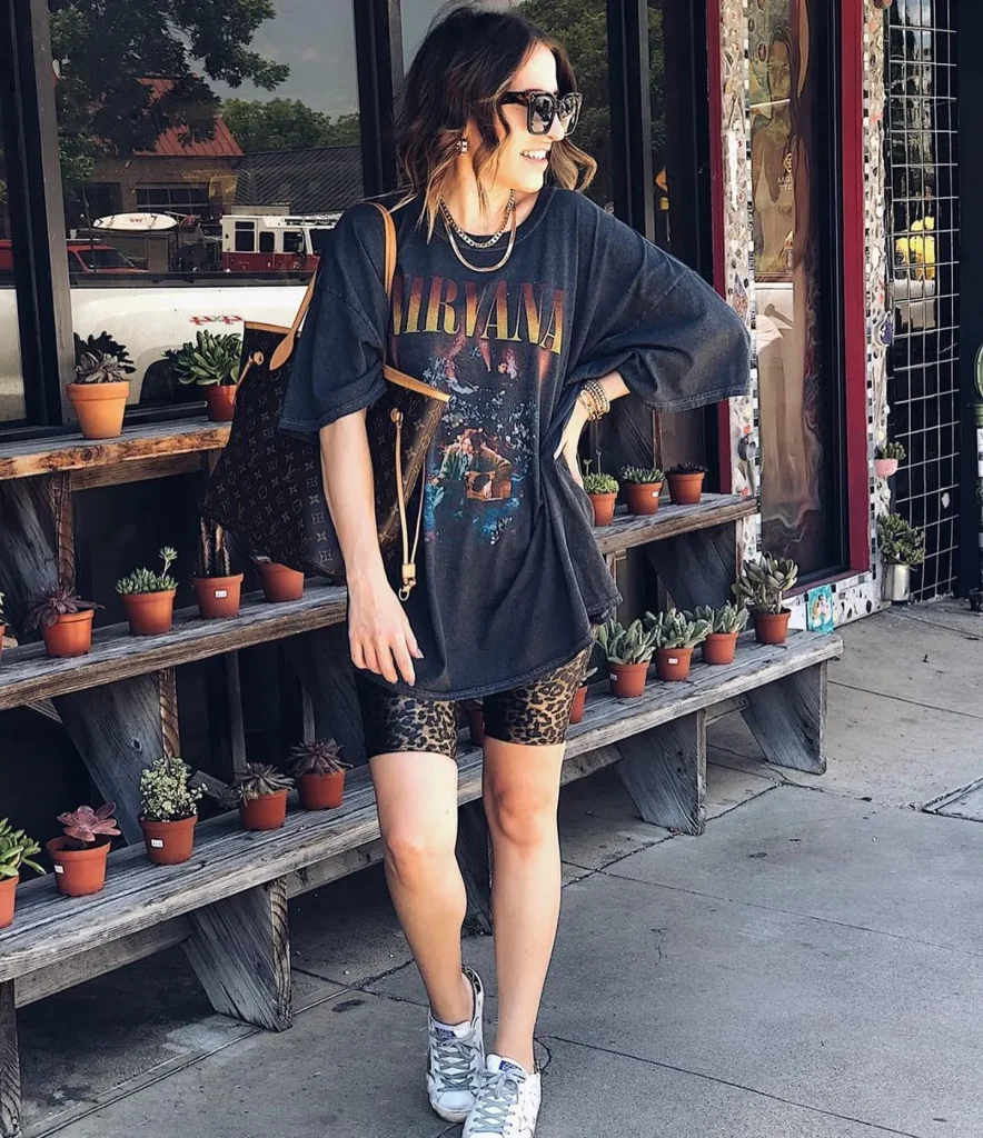 9. Oversized Button-Up + Bike Shorts = Brunch Athleisure