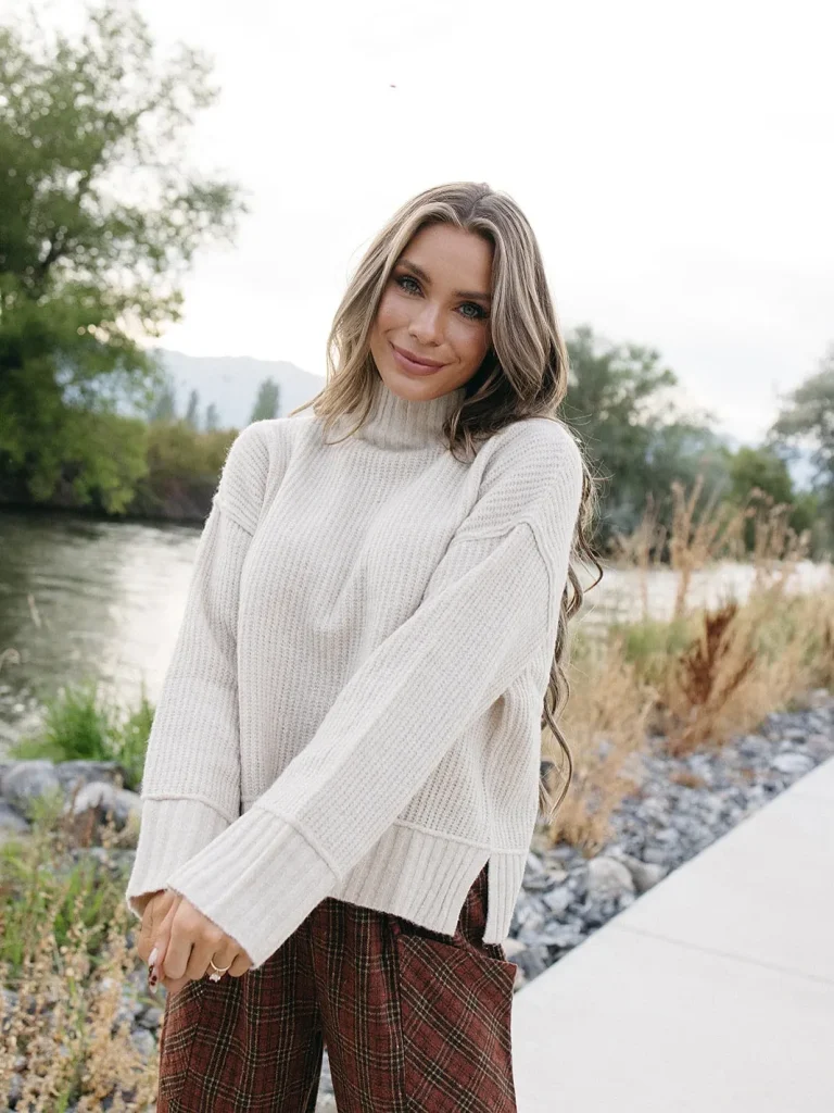- The Look & Feel: A cable-knit or cashmere sweater in a neutral or rich, earthy tone like burgundy or olive green feels both luxurious and appropriately rustic for the Nashville vibe.