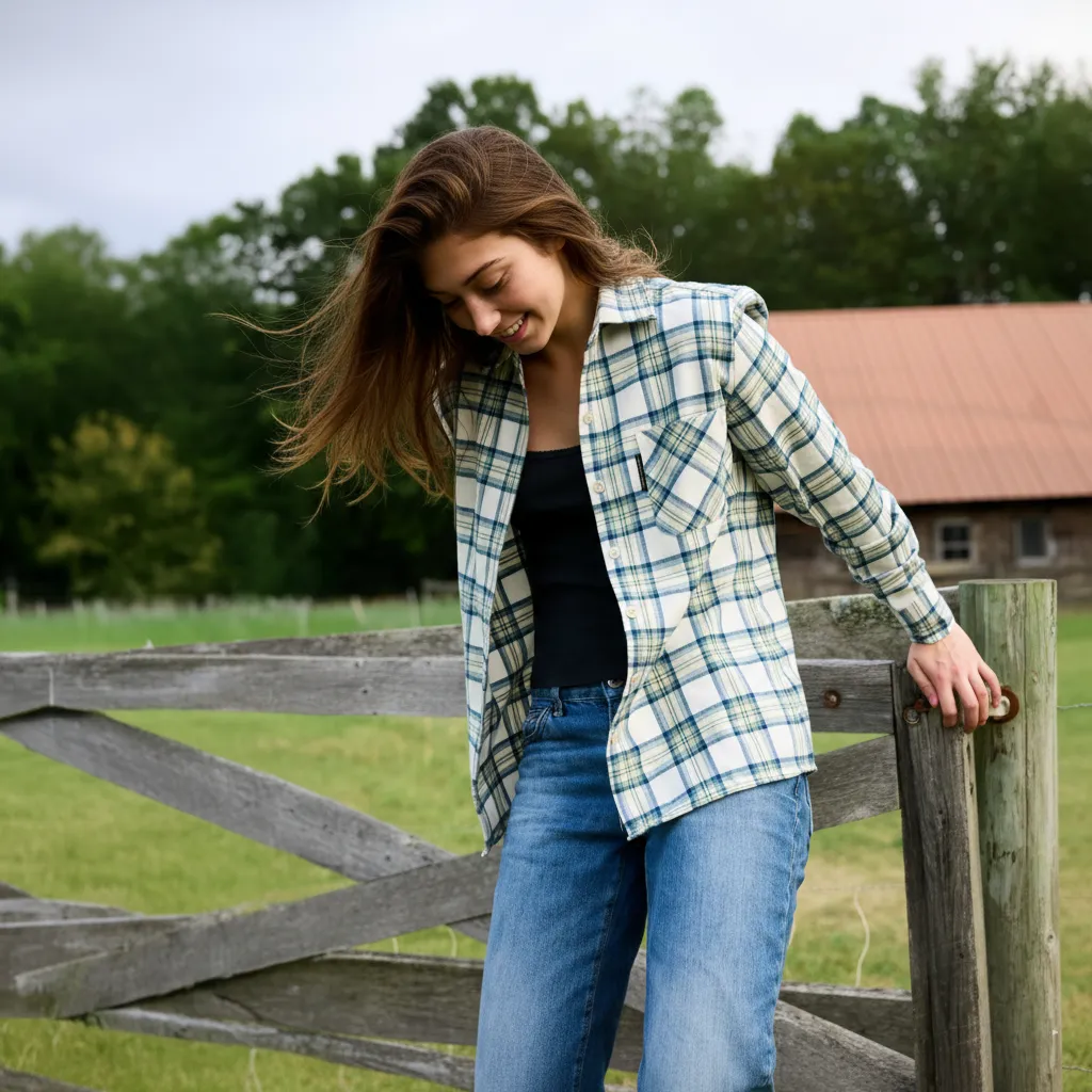A flannel shirt embodies a relaxed, rustic aesthetic that feels right at home in Nashville, offering an easy layer of warmth and pattern.