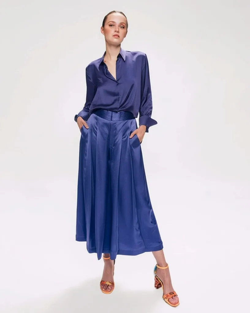 10. High-Waisted Culottes with a Silk Blouse