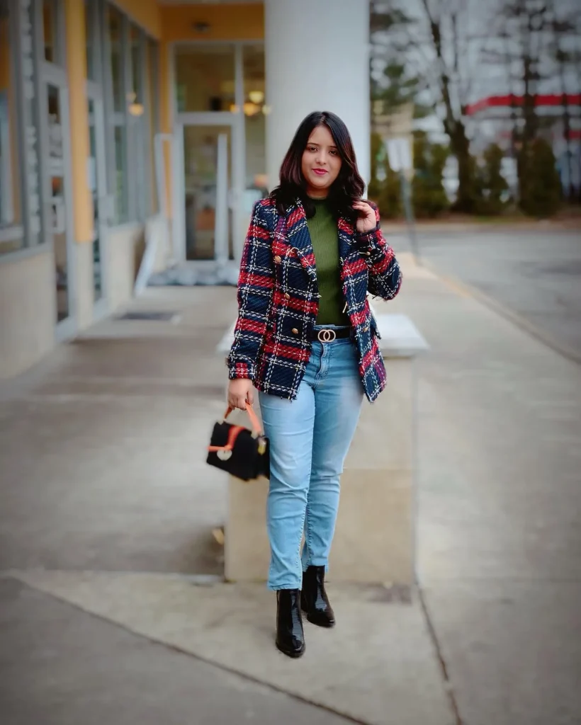 9. Plaid Blazer with Jeans