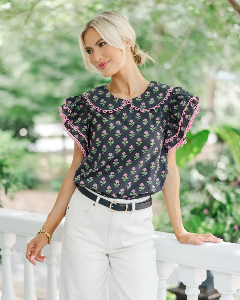 - Combines structure with a touch of femininity.