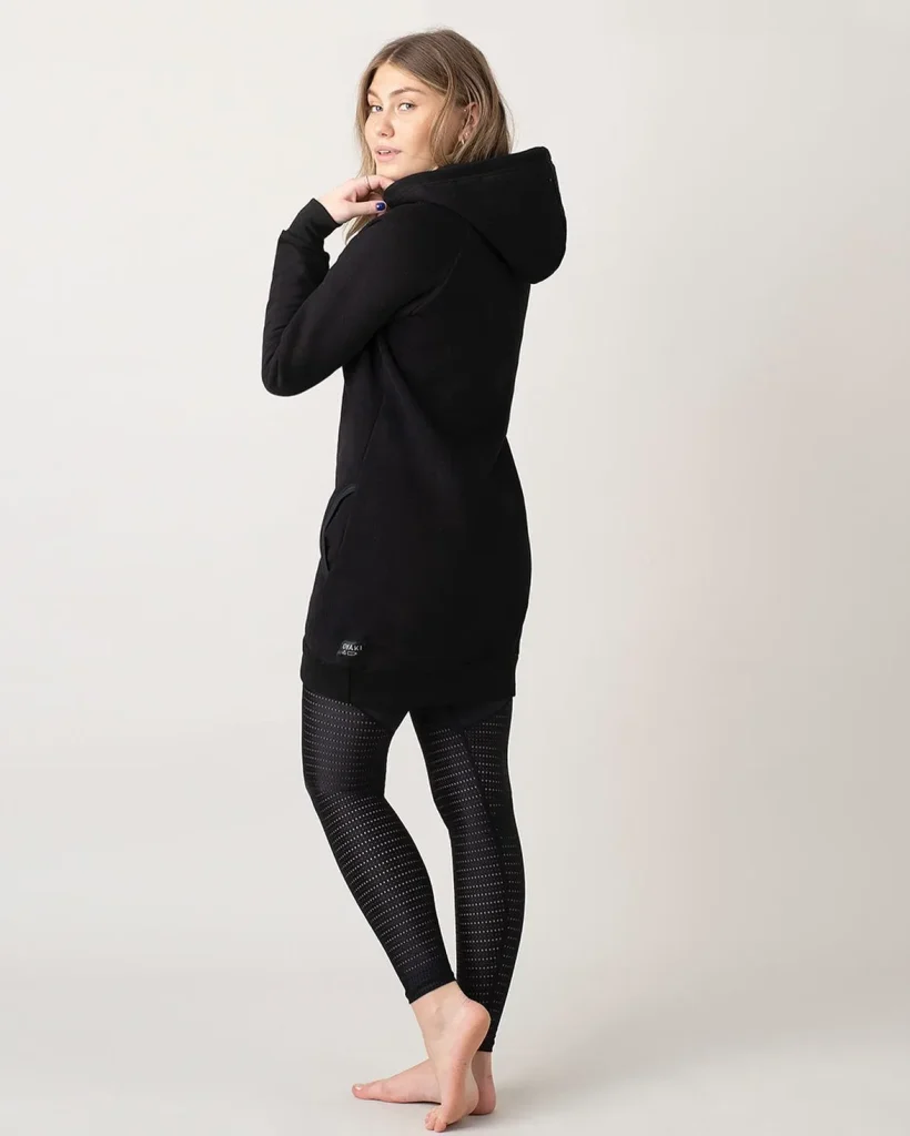 A hoodie dress over leggings is the ultimate cozy-chic combo. It’s perfect for lazy Sundays or coffee runs.