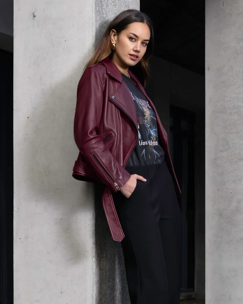 A cropped leather jacket adds structure, while high-top sneakers or ankle boots ground the look. Perfect for concerts, streetwear events, or casual hangouts.