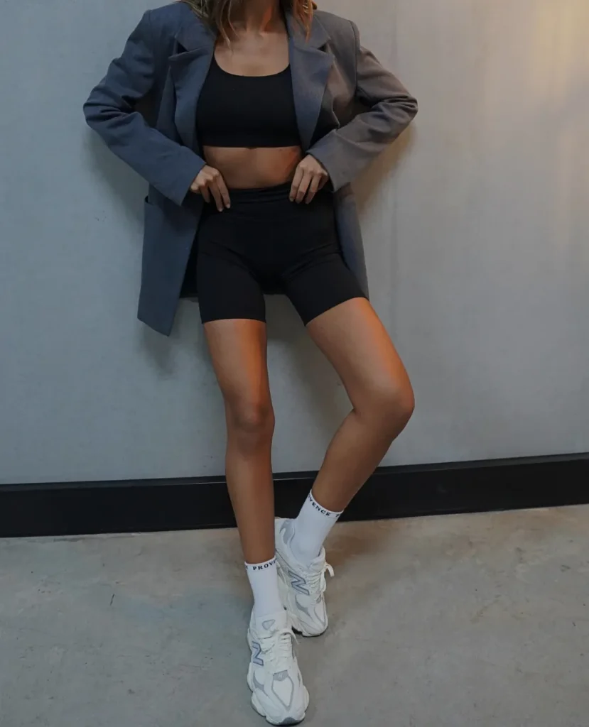 26. Biker Shorts with an Oversized Blazer