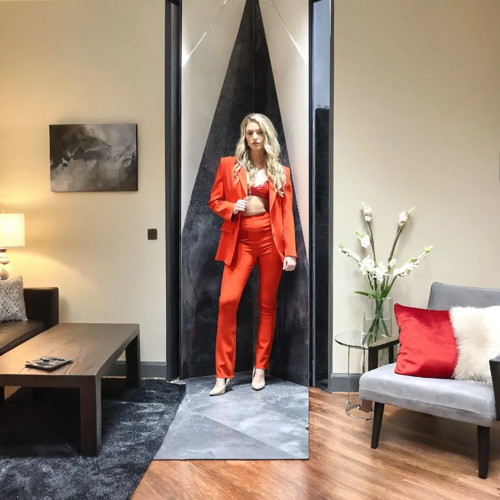22. Bold Colored Suit with a Bralette