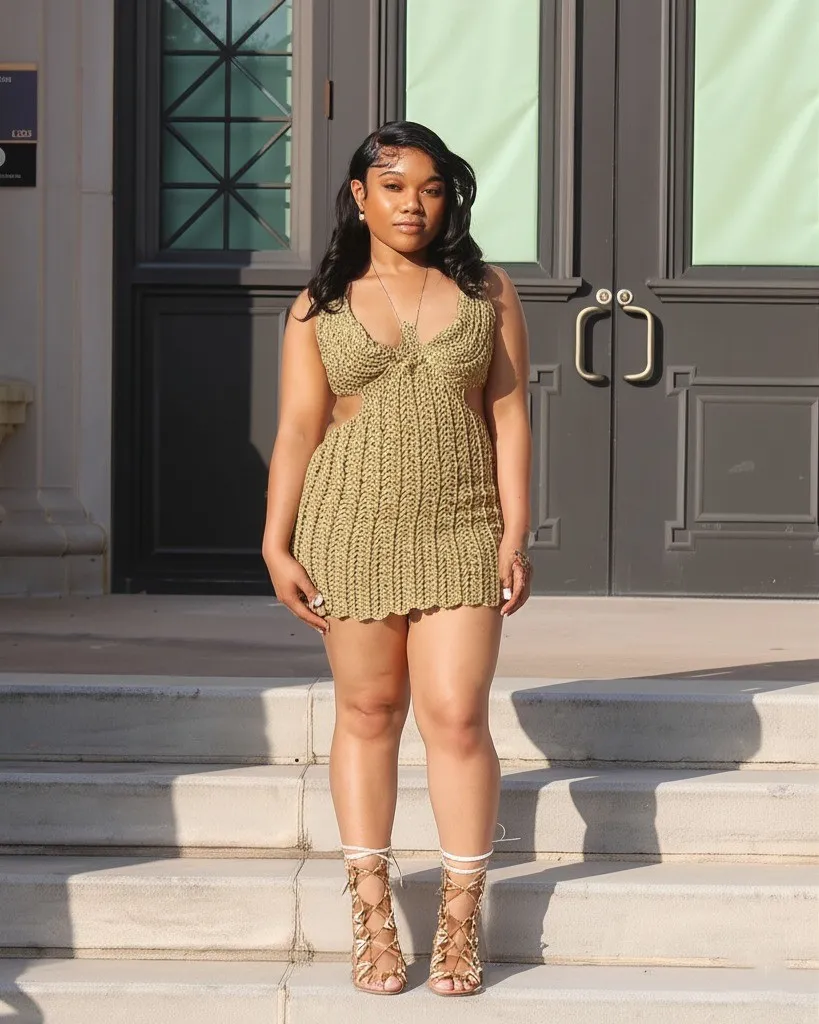 23. Crochet Dress with Gladiator Sandals