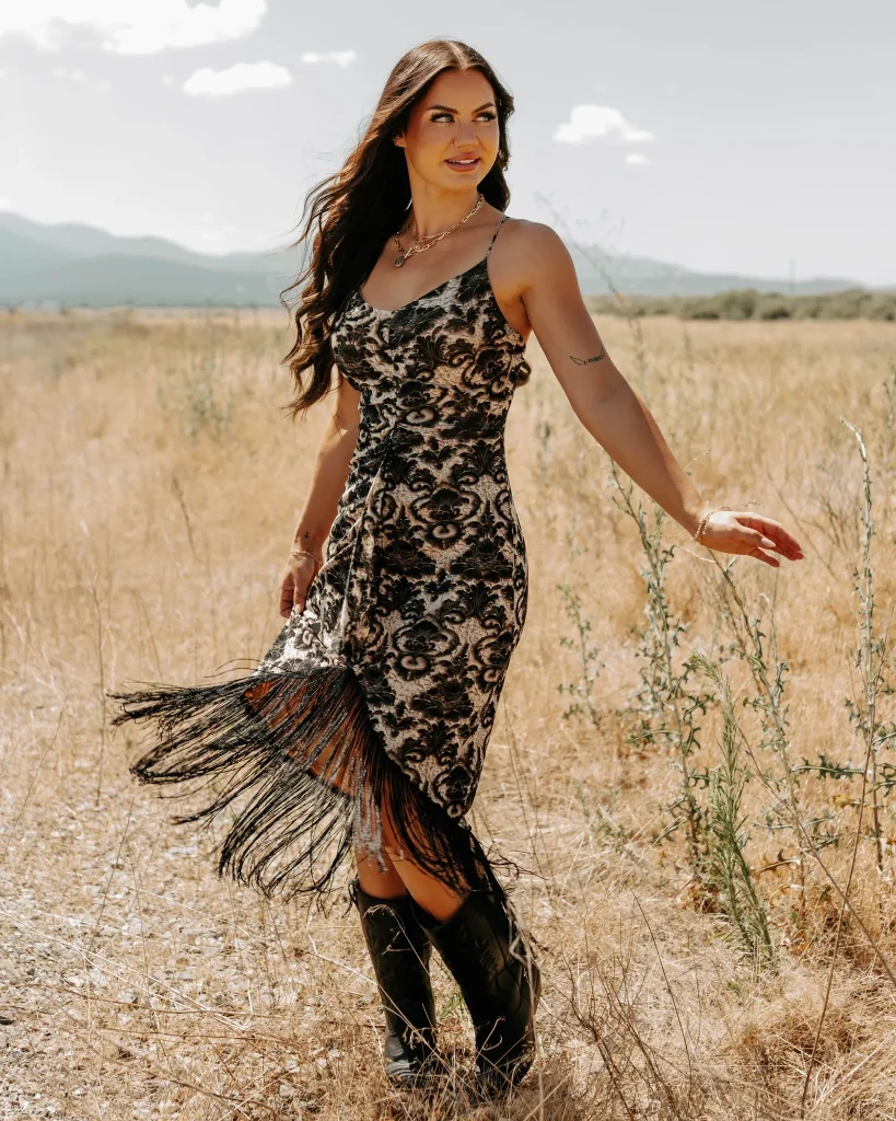 29. Fringe Hem Dress with Cowboy Boots