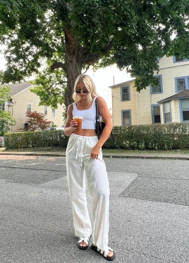 3. Linen Wide-Leg Pants with a Crop Top