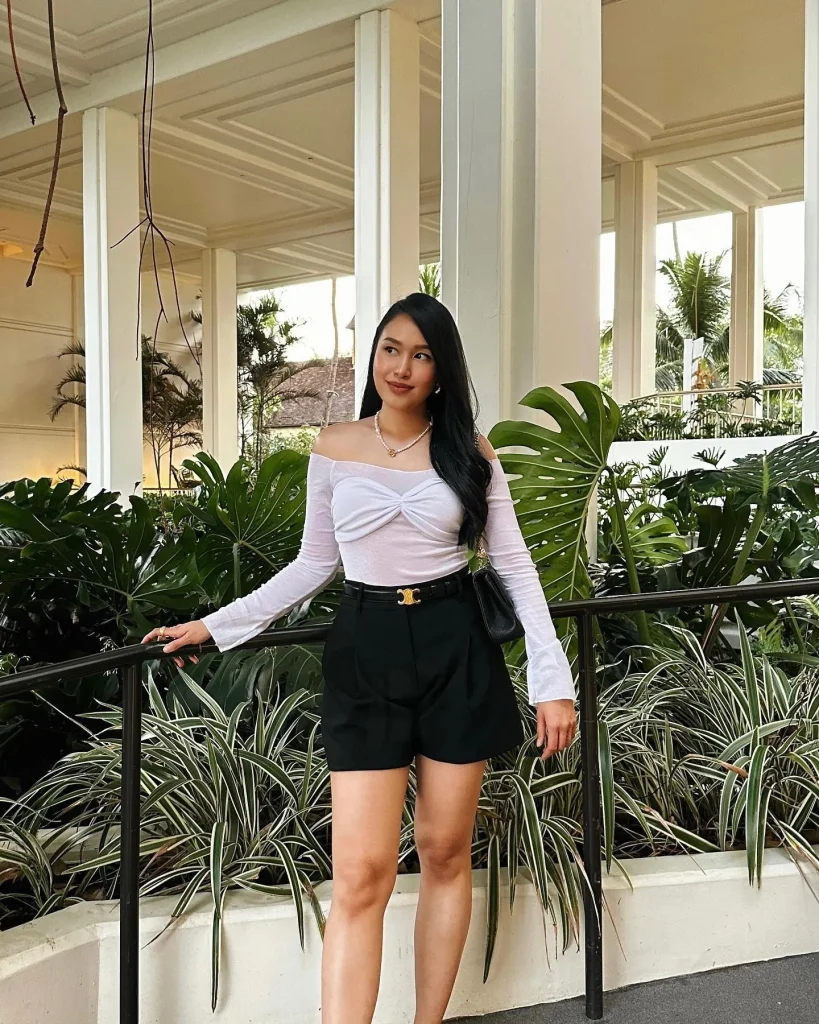 2. Off-the-Shoulder Blouse with Tailored Shorts