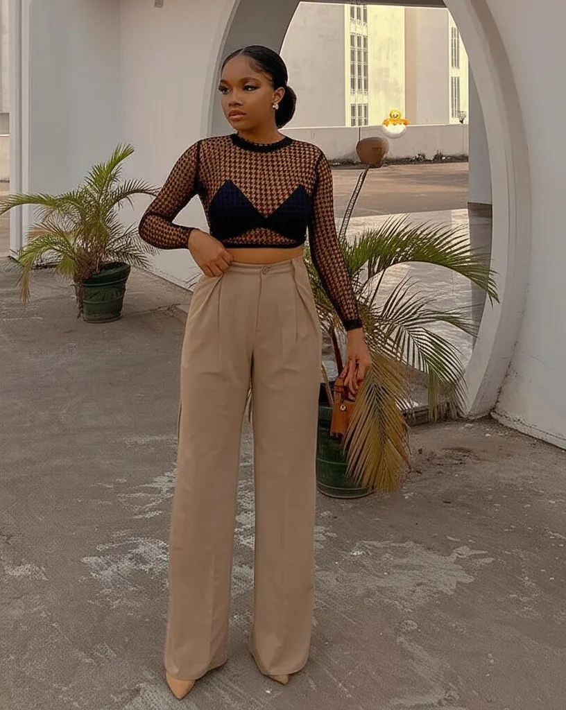 11. Corset Top with High-Waisted Trousers