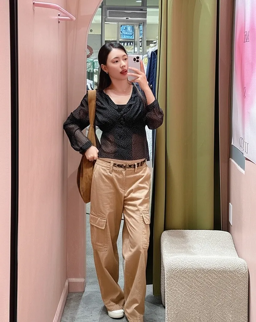 18. Sheer Blouse with Cargo Pants