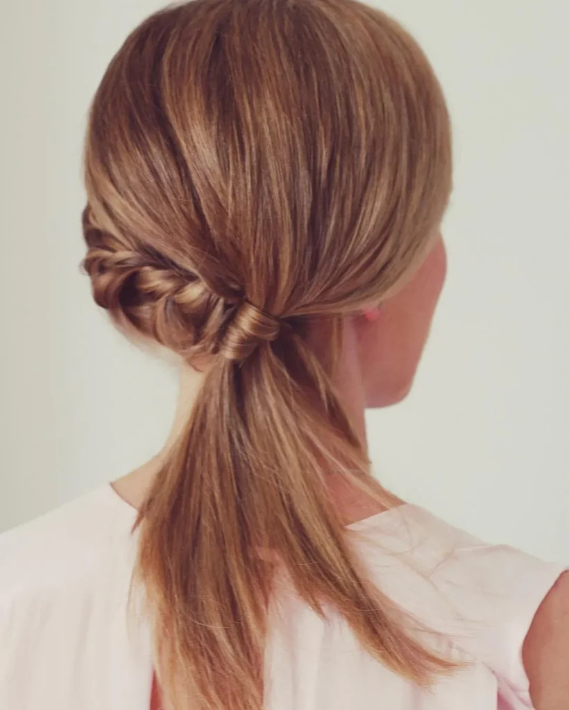 Add a twist to the classic ponytail by gathering your hair to one side, twisting it, and securing it with an elastic. It’s perfect for a relaxed, romantic style.