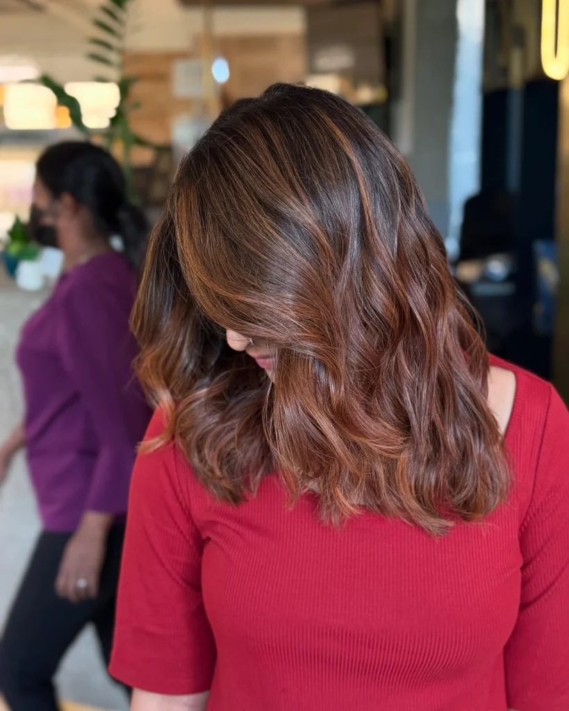 This technique blends rich tones of burnt orange, caramel, and cinnamon, giving your hair that sun-kissed look as if you’ve been soaking in fall’s warmth all season.