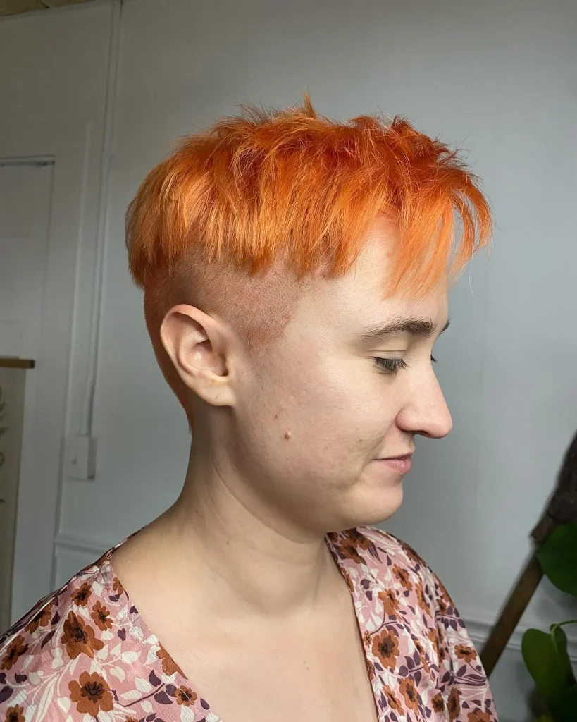If you’re feeling daring, why not combine a pixie cut with pumpkin spice hair? This look is fresh, modern, and totally eye-catching.