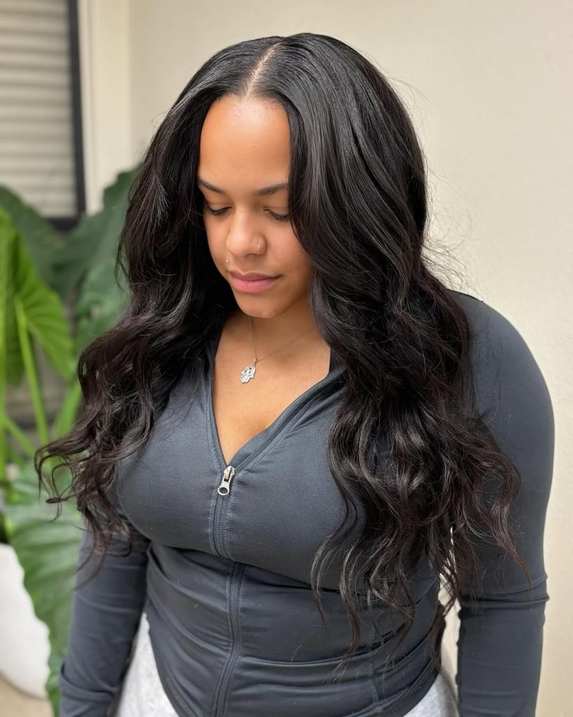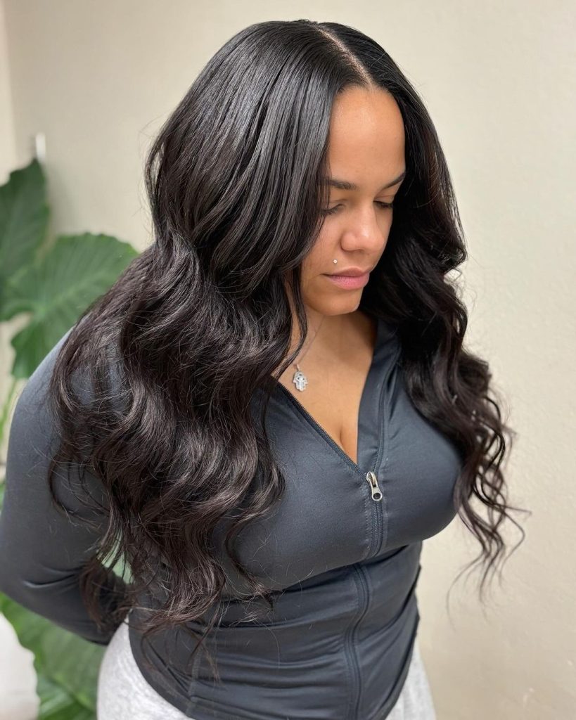 A deep side part adds drama to your weave, creating asymmetry that flatters your face shape. It’s a quick way to switch things up for a bold, sophisticated look.