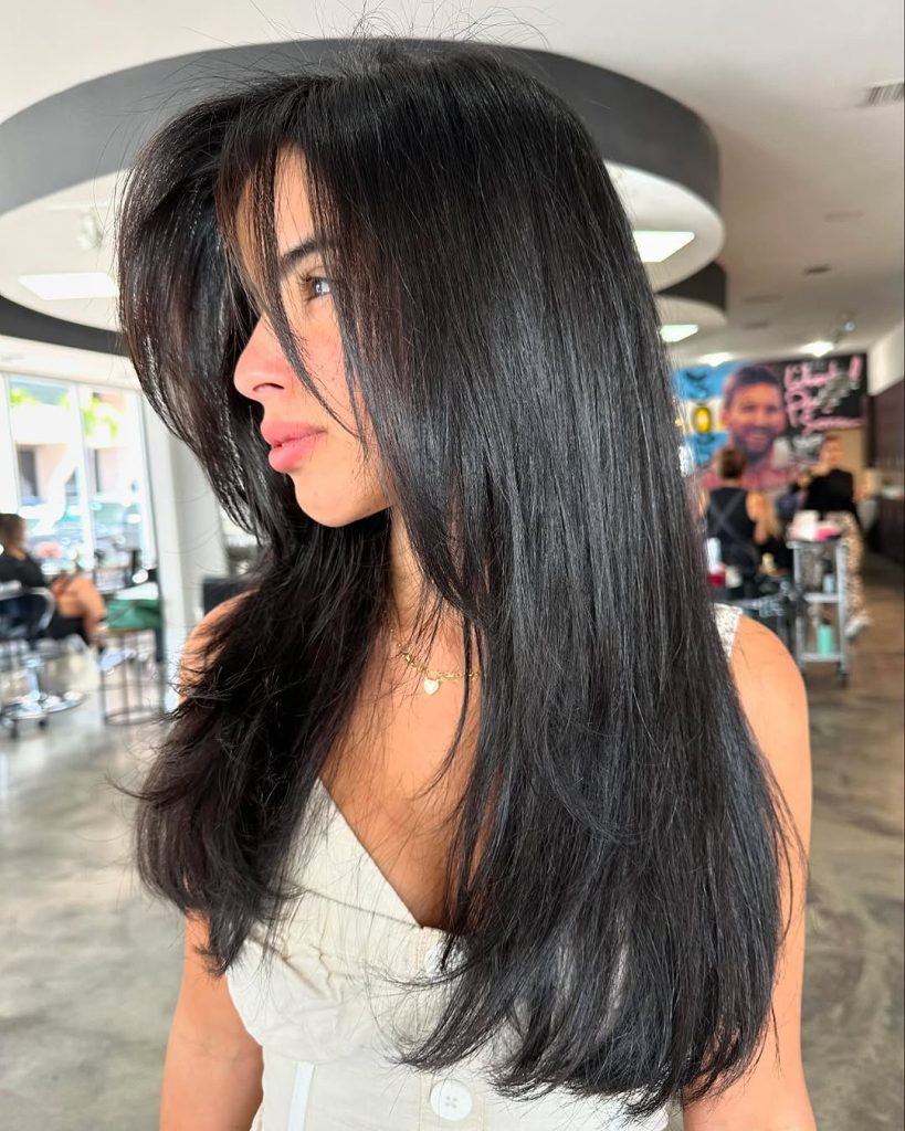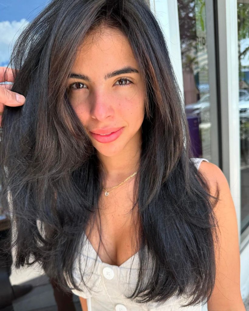 For a more textured, edgy look, go for a choppy layered weave. The layers add movement and body, creating a full-bodied, chic style that’s perfect for a night out.