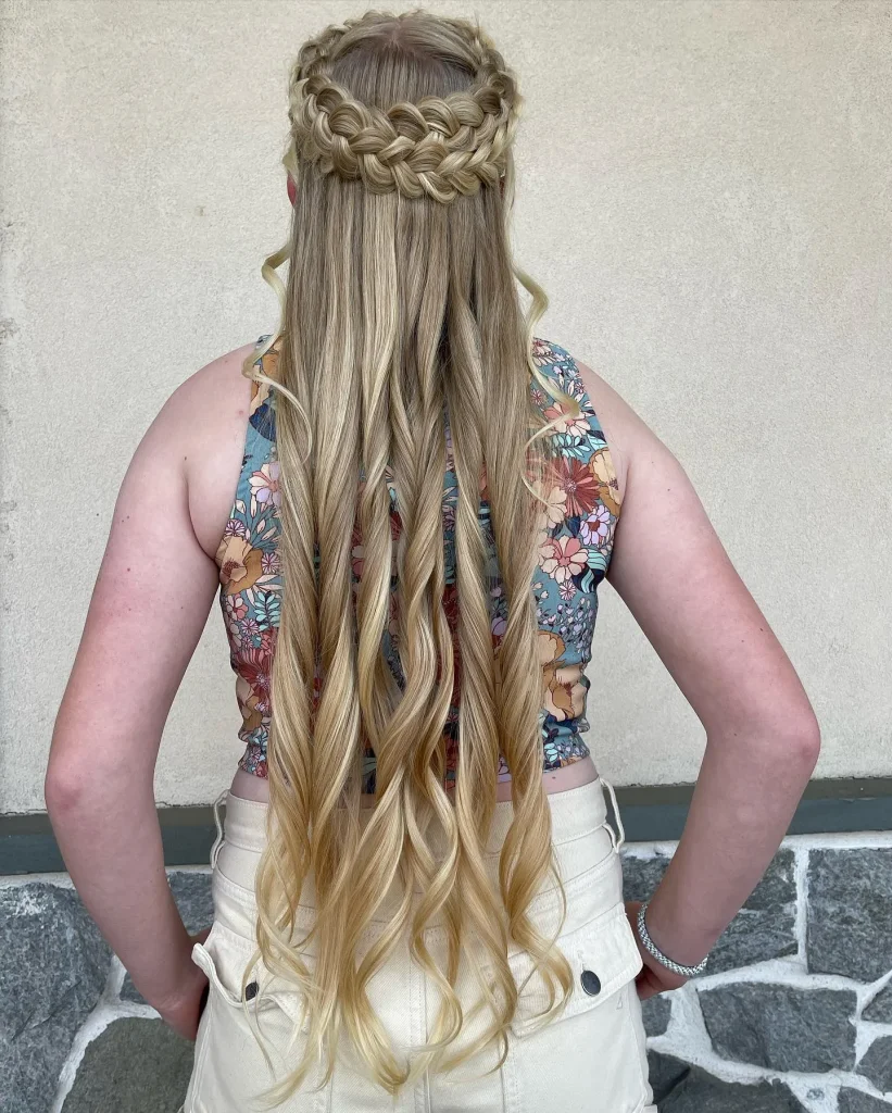 The braided crown adds a touch of elegance to your relaxed hair. It’s perfect for special occasions or when you want to feel extra glam.
