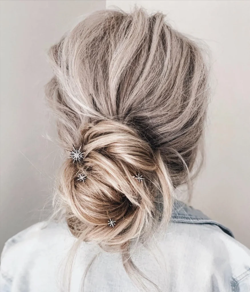 A loose low bun is an effortlessly chic hairstyle. It’s perfect for a casual day out or even a laid-back evening look.