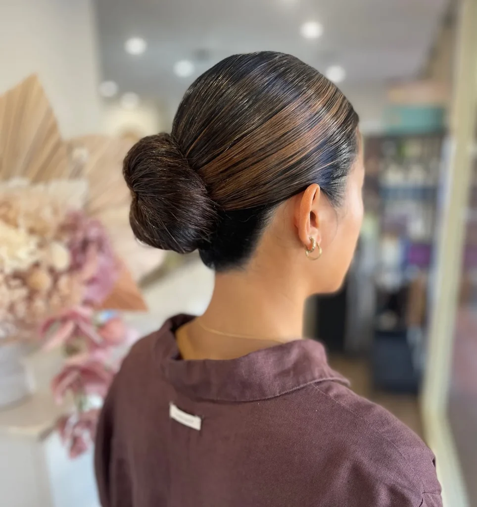 A sleek chignon is an elegant updo that’s perfect for weddings, parties, or any formal event. It’s classy and timeless.